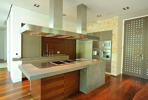 Dit typisch jaren ’30-woonhuis richtten we van binnen volledig opnieuw in. In vrijwel alle ruimtes pasten we maatwerk toe. Het lakwerk spoten we in “doodmat” om een natuurlijke uitstraling te verkrijgen. De keuken was vanwege het enorme natuurstenen blad een grote uitdaging.
