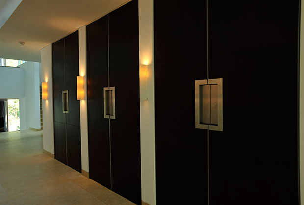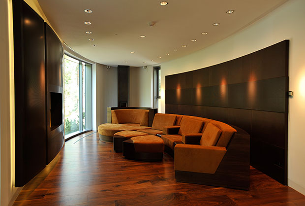 Voor de uitvoering van deze “thuisbioscoop” maakten we gebruik van exclusieve houtsoorten waarbij de integratie tussen domotica en detaillering zorgde voor een spanningsveld. Een andere uitdaging vormde het blind wegwerken van het gigantische projectiescherm in ingeschoven vorm. Waar? Aan boord van een Super Jacht.