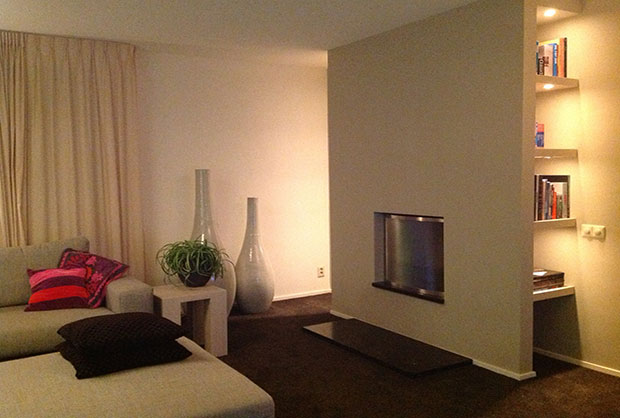 Huisinrichting met eigentijds kleurgebruik, strakke lijnen en toch warme uitstraling. Hogenelst maakte hierbij gebruik van duurzame materialen.